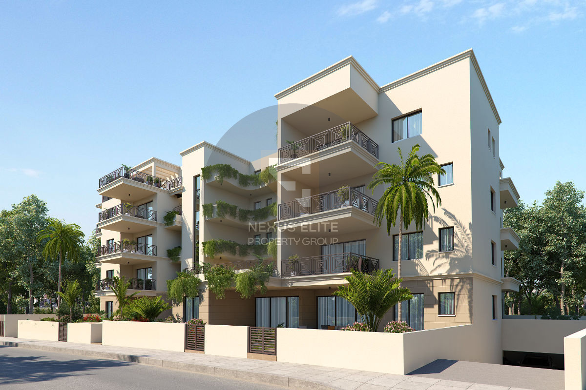 A modern residential project under construction in the popular area of Vergina, Larnaca, offering a selection of 1-, 2-, and 3-bedroom apartments designed for contemporary comfort and style. The development features four floors, including ground-floor residences with private gardens and beautifully landscaped communal areas, creating a serene and welcoming environment.